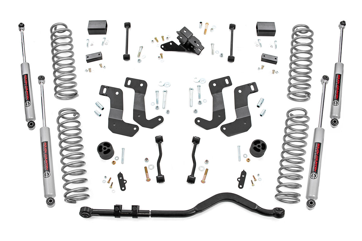 When it comes to your 4-door EcoDiesel Jeep JL, we know you need a lift that won’t let you down. Our 3.5 Inch Lift Kit delivers legendary off-road prowess and smooth on-road handling.Increased Ground Clearance: Get ready to conquer those rocky trails and rough terrains like a boss! Our lift kit gives your Jeep Wrangler Unlimited the extra inches it needs to clear obstacles with ease.Front-to-Rear Leveling: Tired of that nose-down stance? Ditch the unbalanced Jeep life with our leveling kit. We bring symmetry to your ride, lifting the front to match the rear, giving you a smooth and steady journey.Tuned Coil Springs for Superior Performance: Your Jeep’s handling and ride quality matter, and we get that. Our coil springs come dialed in with OEM spring rates, delivering top-notch handling and a plush ride. Our linear coil rate springs take it up a notch, ensuring impeccable handling and stability, even when the terrain gets wild.Additional Tire Clearance: Who doesn’t want bigger, beefier tires? Our lift kit makes room for larger tires (up to 35 inches), giving your Jeep a more aggressive look that will turn heads on and off the road!Heavy-Duty Track Bar: Our included track bar is an absolute beast, constructed from forged solid steel for unparalleled strength and durability. With its massive 1.25-inch outside diameter and rugged OEM-style rubber bushings, it’s built to handle anything the off-road throws its way.Easy Installation: We know you’d rather be off-roading than in the garage all day. That’s why our lift kit is designed for easy installation, so you can hit the trails in no time.At Rough Country, we understand that no two off-road journeys are the same. That’s why our 3.5-inch kit is fully adaptable, allowing you to select your preferred shock series, be it the nitrogen-charged N3 shocks, M1 monotube shocks, or our V2 monotube shocks. With Rough Country, you’re not just upgrading your Jeep; you’re defining your off-road legacy.