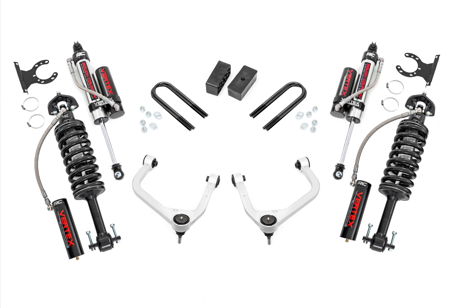 Explore New Heights: GMC’s fifth-generation Sierra 1500 features an impressive all-new design that’s built from the ground up, with aggressive angles and head-turning stylings that fit in beautifully when transformed with Rough Country’s 3.5-inch Suspension Lift.Innovative Design and Construction: When changing a vehicle’s suspension, the key to preserving ride quality is keeping the geometry of all suspension components as close to their factory angles as possible. Rough Country’s 3.5in lift features a set of forged aluminum upper control arms to provide the correct suspension geometry in our most durable control arm to date! This perfect-height lift is a great choice for anyone who wants more than a simple level but doesn’t quite want the full height of a 6-inch option. This kit lifts and levels the front of the vehicle with the rear, offering enough increased ground clearance to run up to 295/55R20 tires with an improved, aggressive look. We didn’t want to limit you to one standard kit. Rough Country’s 3.5-inch kit is configurable with all the shock options that we offer. This allows you to choose which shock series you want! Ranging from our nitrogen-charged N3 shocks to our Vertex reservoir shocks the power to choose is in your hands.Installation: Requiring the use of a strut compressor to install, an estimated timeframe of 5-6 hours is recommended to complete this full installation. This full kit can be installed at home and can be completed efficiently and quickly!Limited Lifetime Replacement Warranty: Rough Country’s 3.5″ Suspension Lift Kit is backed with a limited lifetime replacement warranty towards manufacturer defects. As such, the product is protected from structural and workmanship damage after the date of purchase. With our industry-leading warranty give yourself peace of mind when using Rough Country’s Suspension products!