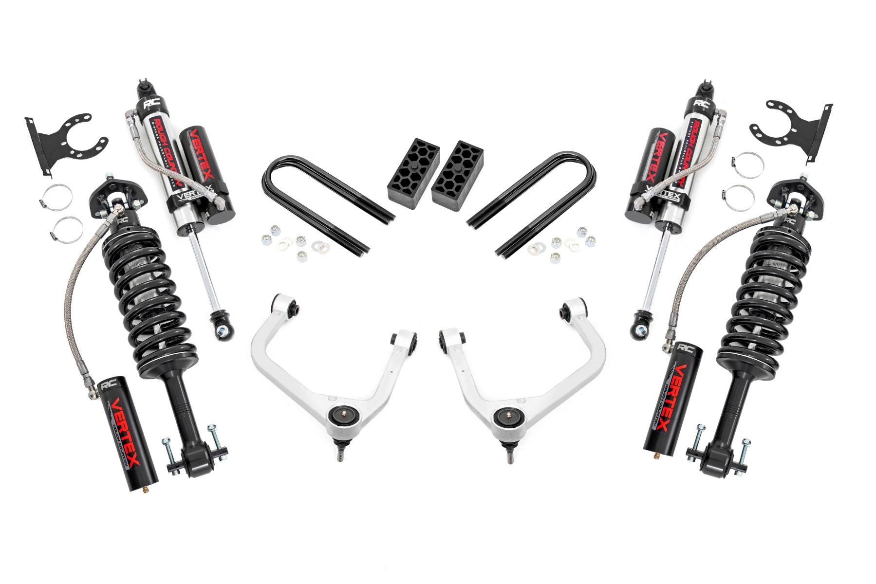 Explore New Heights: GM’s fourth-generation Silverado 1500 features an impressive all-new design thatΓÇÖs built from the ground up, with aggressive angles and head-turning stylings that fit in beautifully when transformed with Rough CountryΓÇÖs 3.5-inch Suspension Lift.Innovative Design and Construction: When changing a vehicle’s suspension, the key to preserving ride quality is keeping the geometry of all suspension components as close to their factory angles as possible. Rough Country’s 3.5in lift features a set of forged aluminum upper control arms to provide the correct suspension geometry in our most durable control arm to date! This perfect-height lift is a great choice for anyone who wants more than a simple level but doesnΓÇÖt quite want the full height of a 6-inch option. This kit lifts and levels the front of the vehicle with the rear, offering enough increased ground clearance to run up to 33″ tires with an improved, aggressive look. We didn’t want to limit you to one standard kit. Rough Country’s 3.5-inch kit is configurable with all the shock options that we offer. This allows you to choose which shock series you want! Ranging from our nitrogen-charged N3 shocks to our Vertex reservoir shocks the power to choose is in your hands.Installation: Requiring the use of a strut compressor to install, an estimated timeframe of 5-6 hours is recommended to complete this full installation. This full kit can be installed at home and can be completed efficiently and quickly!Limited Lifetime Replacement Warranty: Rough Country’s 3.5″ Suspension Lift Kit is backed with a limited lifetime replacement warranty towards manufacturer defects. As such, the product is protected from structural and workmanship damage after the date of purchase. With our industry-leading warranty give yourself peace of mind when using Rough Country’s Suspension products!