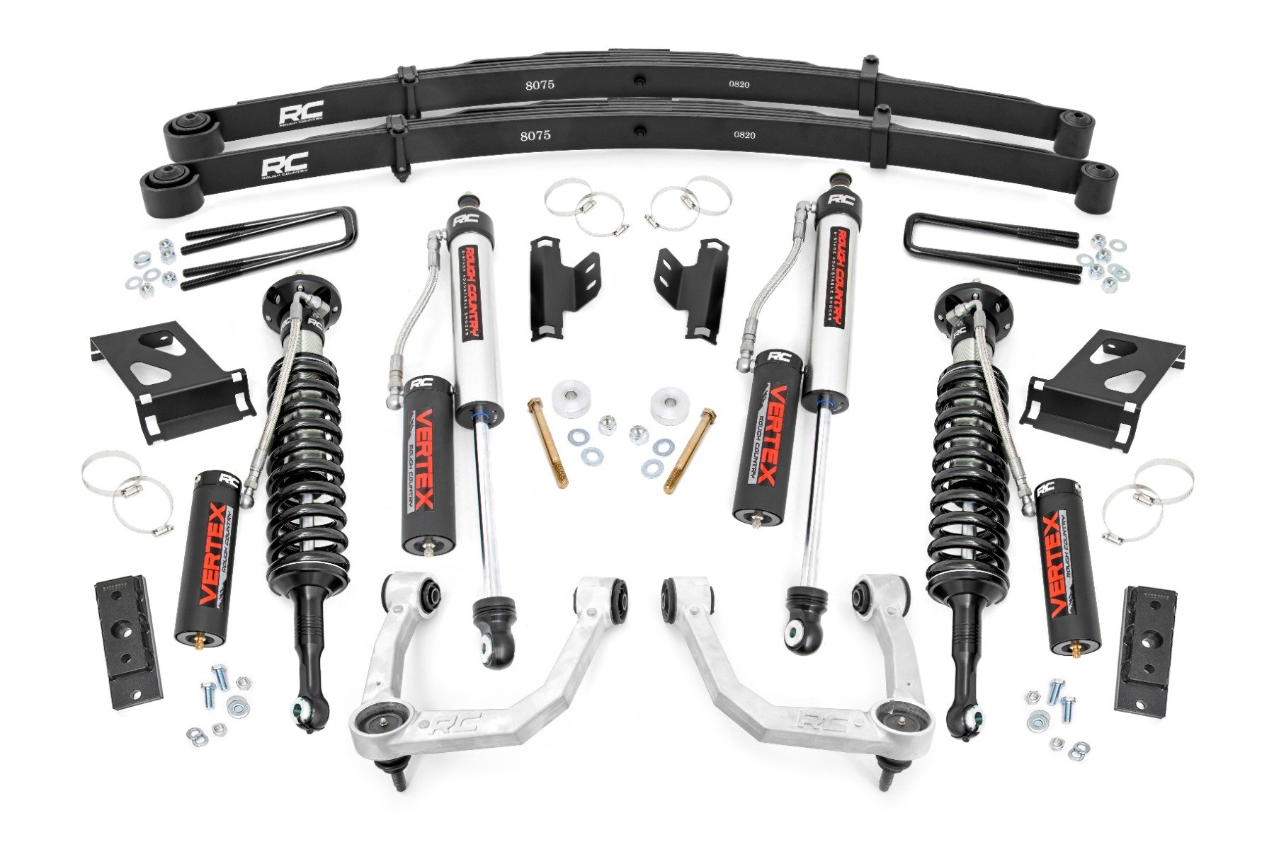 Upgrade with Easy Installation: Rough Country’s 3.5-inch Bolt-On Kit offers easy installation and aggressive good looks at an incredible value. Take your truck to new heights with this excellent option for the second/thrid generation Toyota Tacoma. This kit features a set of high-quality, lightweight, forged aluminum Upper Control Arms designed to make alignment adjustments easier with durable rubber bushings. These arms promote a factory-like geometry by keeping the ball joint at optimum angles after lifting, allowing for an improved range of motion with less stress, wear, and tear.Boost Off-Road Performance and Customize Your Ride: This 3.5-inch lift kit raises your vehicle’s clearance, giving you better off-road capability and smoother performance over obstacles. For a truly personalized experience, this all-inclusive kit is fully configurable with a variety of shock and strut options. Choose from Rough Country’s nitrogen-charged N3’s or the premium Vertex reservoir for the perfect ride quality tailored to your needs. Plus, Rough Country’s rear springs minimize axle wrap, enhancing vehicle stability and durability while maintaining superior comfort and handling, preserving your vehicle’s original ride feel.Customize Your Ride: This all-inclusive kit is fully configurable with all shock/strut options, allowing you to choose from Rough Country’s nitrogen-charged N3’s or the premium Vertex reservoir for the perfect ride quality tailored to your needs. Additionally, Rough Country’s rear springs minimize axle wrap, enhancing overall vehicle stability and durability for a more controlled ride. It’s the perfect replacement for worn-out factory springs while preserving superior comfort and handling, maintaining your vehicle’s original ride feel.Achieve the Perfect Stance: Once installed, this kit gives your truck a balanced, aggressive stance, leveling the front with the rear for a more commanding look. Installation is quick and hassle-free with no cutting or welding required, allowing you to get back on the road faster. Compared to other kits on the market, installation is straightforward and can be completed with common tools in a home garage. Best of all, this kit features Rough Country’s Limited Lifetime Replacement Warranty, providing long-lasting durability.