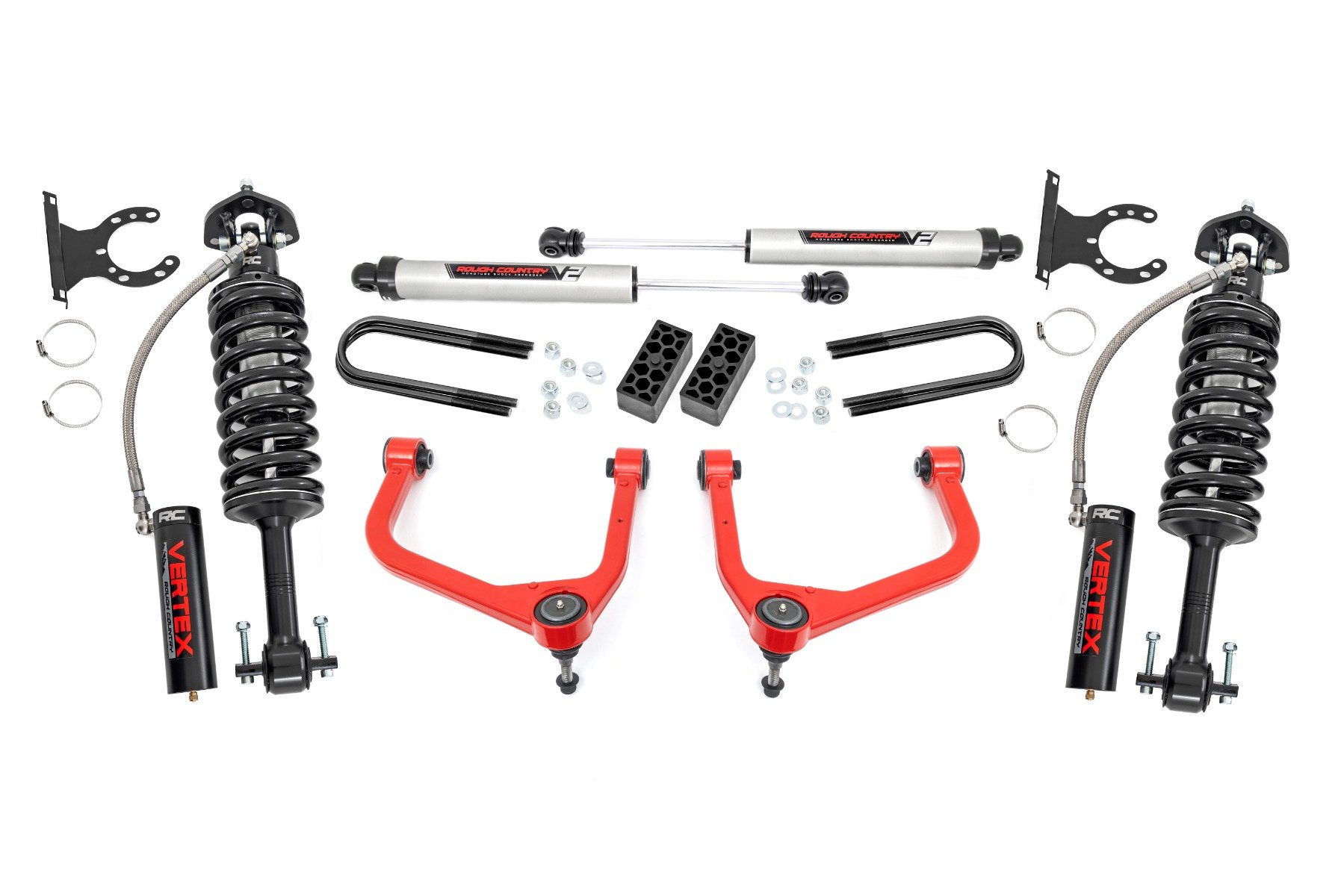 Explore New Heights: GM’s fourth-generation Silverado 1500 features an impressive all-new design thatΓÇÖs built from the ground up, with aggressive angles and head-turning stylings that fit in beautifully when transformed with Rough CountryΓÇÖs 3.5-inch Suspension Lift.Innovative Design and Construction: When changing a vehicle’s suspension, the key to preserving ride quality is keeping the geometry of all suspension components as close to their factory angles as possible. Rough Country’s 3.5in lift features a set of forged aluminum upper control arms to provide the correct suspension geometry in our most durable control arm to date! This perfect-height lift is a great choice for anyone who wants more than a simple level but doesnΓÇÖt quite want the full height of a 6-inch option. This kit lifts and levels the front of the vehicle with the rear, offering enough increased ground clearance to run up to 33″ tires with an improved, aggressive look. We didn’t want to limit you to one standard kit. Rough Country’s 3.5-inch kit is configurable with all the shock options that we offer. This allows you to choose which shock series you want! Ranging from our nitrogen-charged N3 shocks to our Vertex reservoir shocks the power to choose is in your hands.Installation: Requiring the use of a strut compressor to install, an estimated timeframe of 5-6 hours is recommended to complete this full installation. This full kit can be installed at home and can be completed efficiently and quickly!Limited Lifetime Replacement Warranty: Rough Country’s 3.5″ Suspension Lift Kit is backed with a limited lifetime replacement warranty towards manufacturer defects. As such, the product is protected from structural and workmanship damage after the date of purchase. With our industry-leading warranty give yourself peace of mind when using Rough Country’s Suspension products!