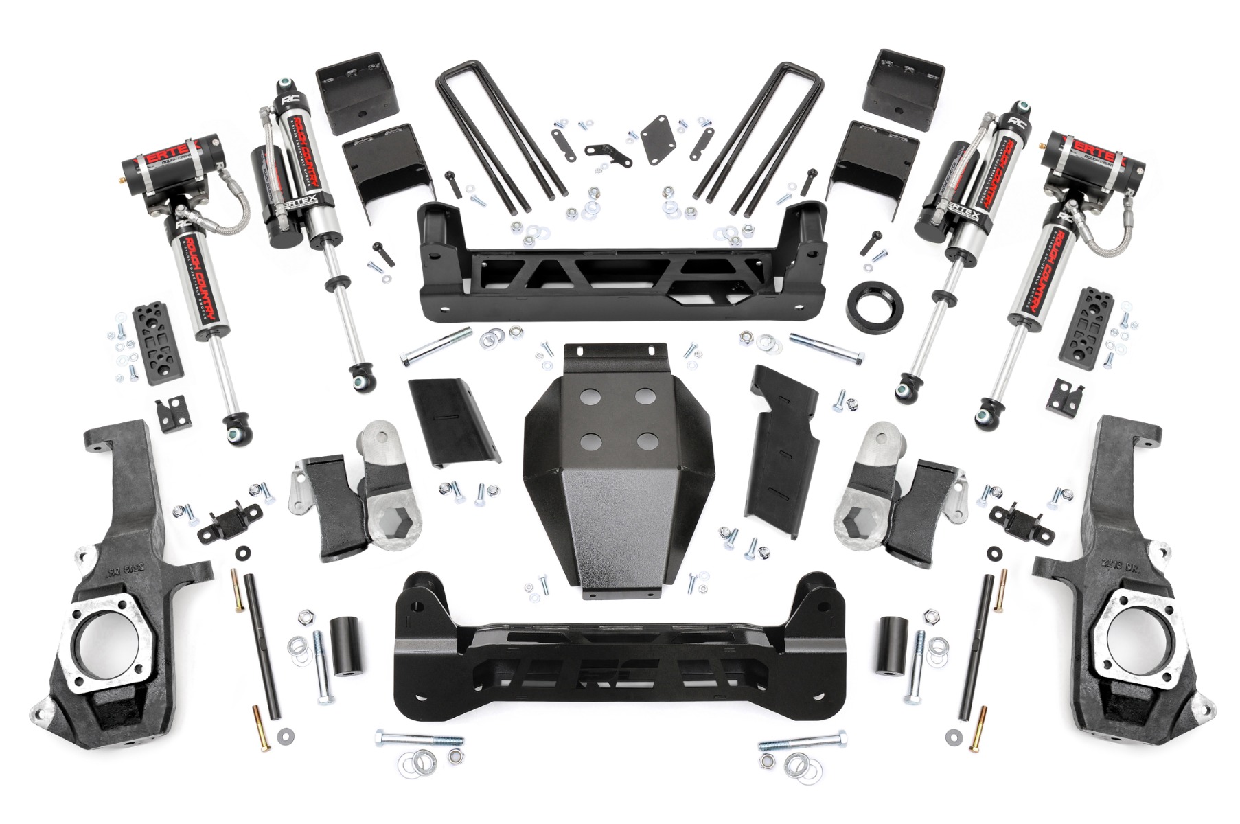 Command Attention from the Start: Right off the lot, the GM 2500/3500HD commands attention with its aggressive stance and sharp style. Rough Country’s 7.5″ Suspension Lift was engineered to enhance this bold presence while keeping every factory advantage intact. Designed with a Non-Torsion Drop layout, this kit delivers improved ground clearance and handling without compromising your truck’s factory angles or axle placement. Built with heavy-duty components, including 1/4″ thick steel crossmembers, 1/2″ thick NTD brackets, and a rugged skid plate, all laser-cut and finished in durable Hammer Black, this lift offers both strength and style. Installation is straightforward and non-invasive, requiring no drilling or differential modifications, so you can elevate your truck without altering its core mechanics.Ride Smoothly with Factory Precision: Experience a ride that feels as smooth as stock with features engineered to retain factory quality. The Non-Torsion Drop design preserves proper torsion bar placement and stock track width, keeping your wheels aligned and handling predictable. Factory axle positioning is maintained to prevent premature wear, while the kit requires no changes to your drivetrain or exhaust. Fully configurable shock options allow you to dial in your ideal ride, with nitrogen-charged N3 shocks, upgraded M1 or V2 monotubes, or premium Vertex reservoir shocks available to suit your driving style and terrain.Conquer Any Terrain with Confidence: Rough Country’s 7.5″ Suspension Lift gives your third-generation Chevy/GMC 2500HD/3500HD the perfect balance of aggressive off-road capability and factory-like comfort, letting you tackle tough terrain with confidence and style.