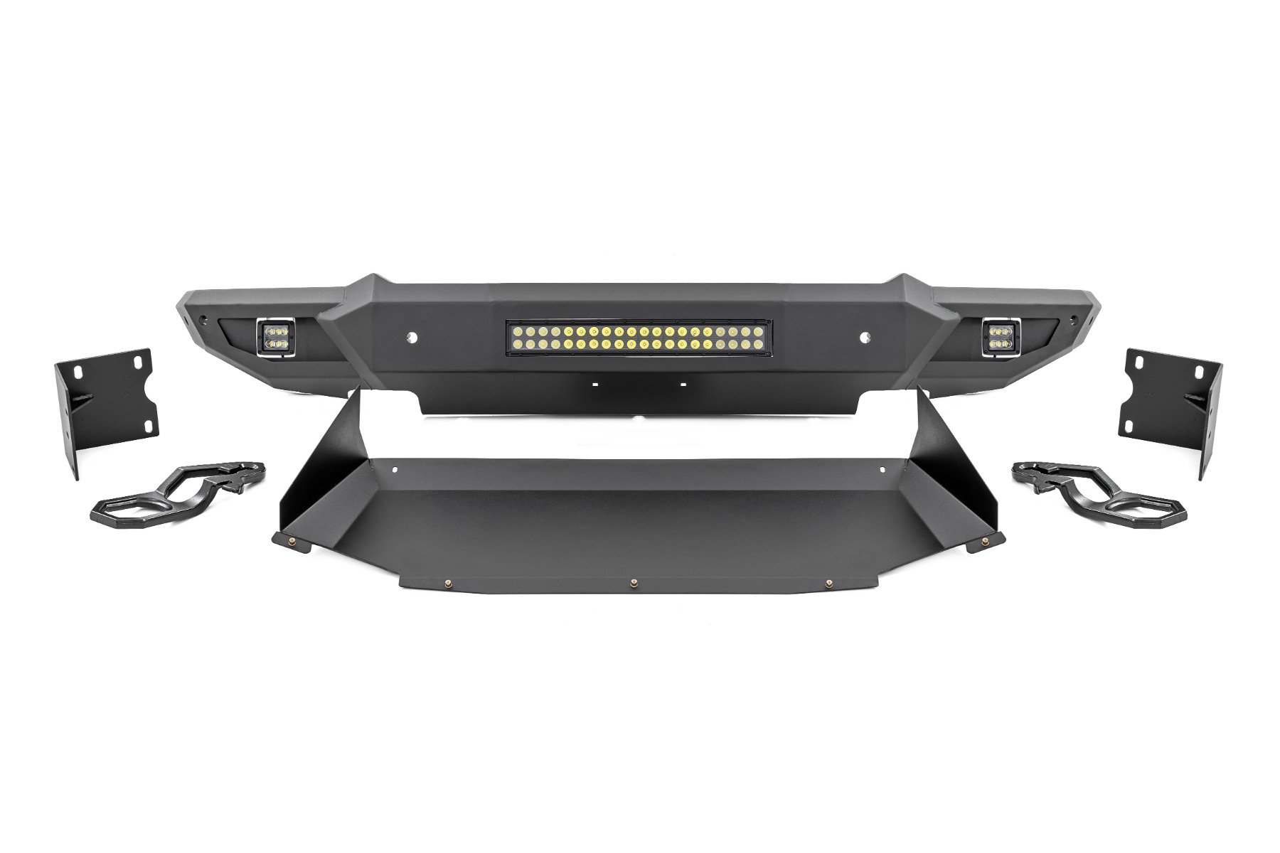 Durable Construction. Rough CountryΓÇÖs Front LED Bumper is made of durable, all-steel construction thatΓÇÖs ready to handle whatever you dish out. Each bumper features two Rough Country Black-Series 2in LED Cubes and a 20in LED Light Bar that offers over 15,000 lumens of combined lighting power. This incredible front bumper system is powder coated flat black and is ready to withstand the elements for a long lifespan of good looks.